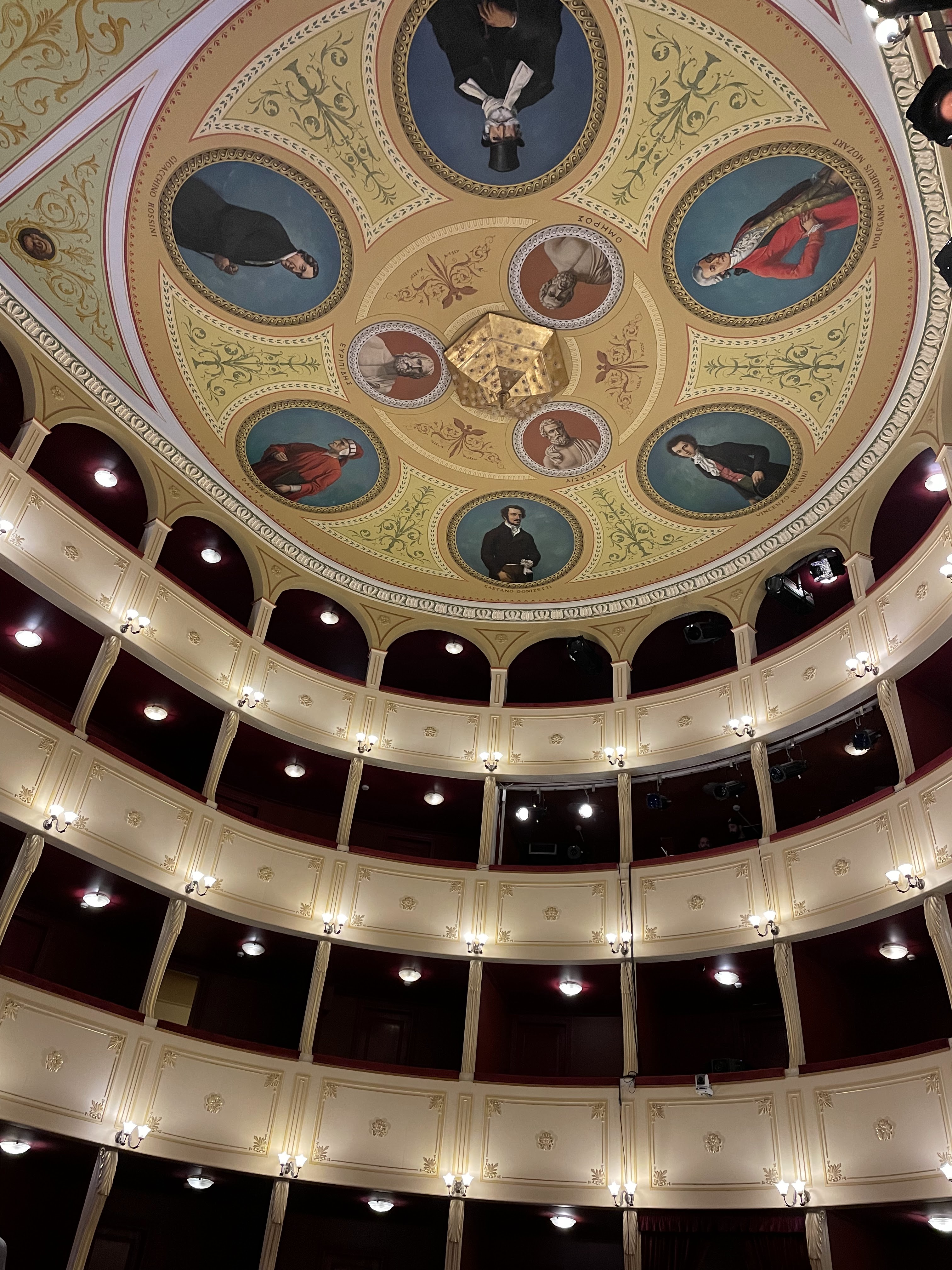 Tonight we have tickets for a musical event at The Apollon Municipal Theatre. It has 300 seats. Jill secured free tickets a few weeks ago. The theatre is 159 years old and based on the designs of Italian architect Pietro Sambo and follows the standards of La Scala in Milan.